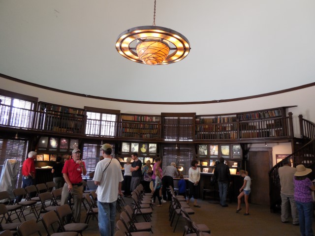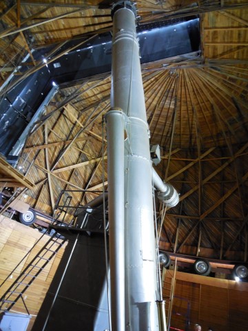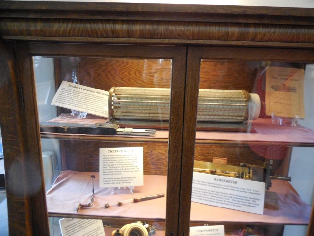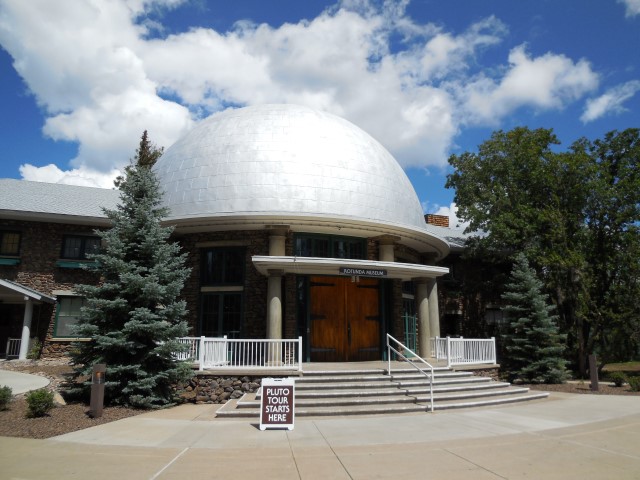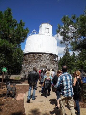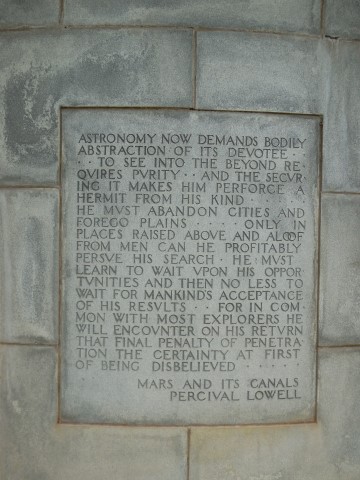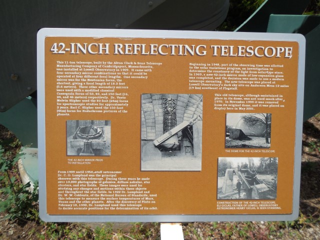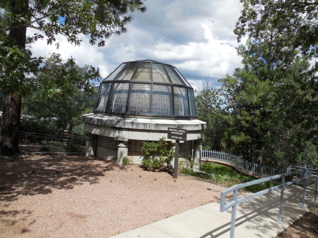 We visited the Lowell Observatory in Flagstaff AZ in in September 2013. This observatory was the brainchild of Percival Lowell. He made his fortune from the cotton mills of Massachusetts that his family owned. He had a lifelong interest in astronomy and decided to pursue his interest in a big way. His goal was to have a first class private observatory at his disposal. Eventually Flagstaff was chosen for the site. Flagstaff is a high desert location (7,000 feet) and was remote from city lights in the 1890's when the observatory was established. Like many other successful observatories it has all of the right elements. Lowell had a fascination with Mars and the large instrument that he commissioned was intended to study Mars with the goal of proving that there was intelligent life there. The centerpiece telescope of the observatory is a 24" refractor with an objective made by Alvan Clark. It was and is a first class instrument. He became fixated on the idea that there were canals on Mars and that these canals showed that there was intelligent life that created them. He documented what he saw through hand drawings that were widely published. Later, while he was still alive, it was found that there aren't any canals. This was hard for him to swallow and Lowell and the Observatory had to contend with this mistake for many years. Did he lie and fabricate the data? Today the best guess is that he really did see lines when he looked at Mars. These lines were the blood vessels in the back of his eye. A special eyepiece that he used on the telescope caused a magnified reflection of his retina and thus the canals of Mars were born. In 1930 one of the Observatory's telescopes was used by Clyde Tombaugh to discover Pluto. Later, Vesto Slipher used the 24" telescope to discover that the universe isn't static but expanding. This discovery paved the way for modern cosmology.