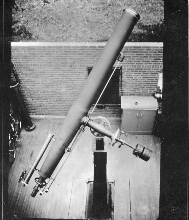 Here's what I found out about this telescope and its history. It is a 9.5" Warner and Swasey refractor which was built in 1887. As delivered it lacked a clock drive and one was added sometime around 1893. The focal length is 144" which makes if a f/15 instrument which is ideal for planetary observations. Many of the refractors of this period had this same approximate f ratio.