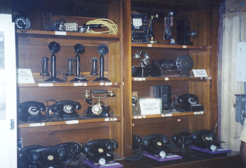 The images below give only a very general impression of the goodies that are in the museum. Click on any of them to see a larger version. These pictures were taken during the Sixth Annual Telephone Fair on August 10, 2002. My thanks to Charles and Sandra Galley who were our guides through the collection. Also special thanks to all the other museum volunteers who made this Fair a delightful experience!