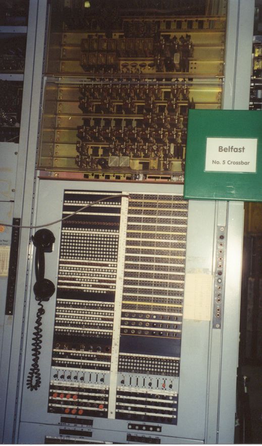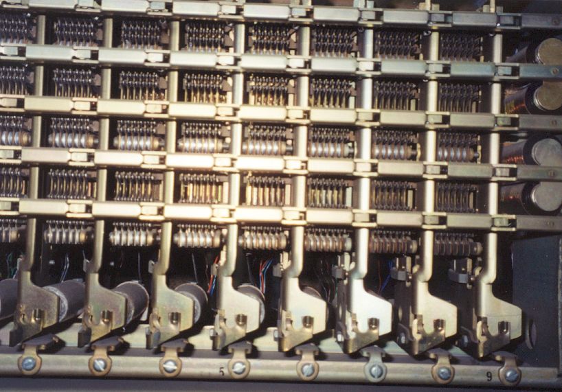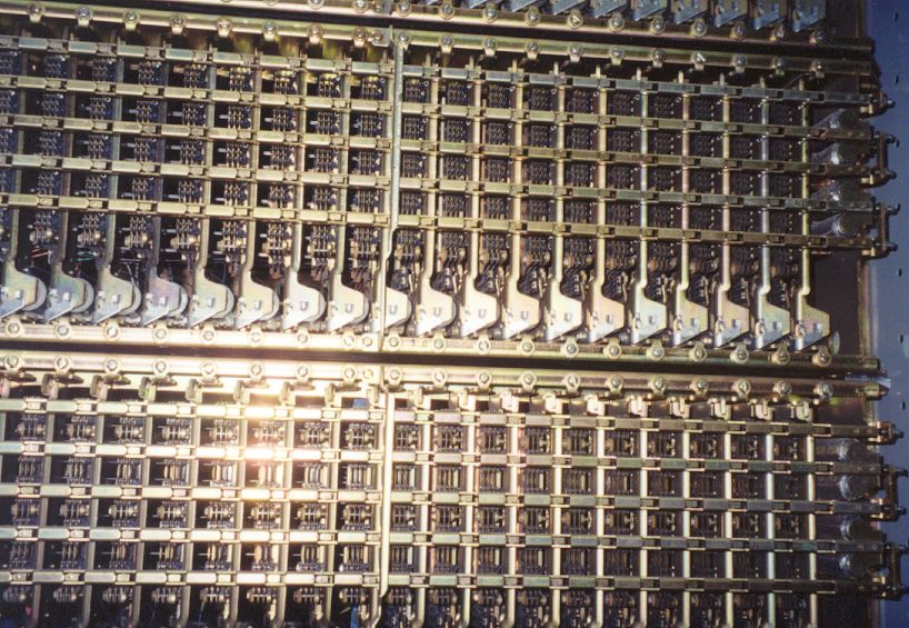 The next generation of automatic switching was the crossbar. The ex-Belfast, Maine switch is a #5 crossbar undergoing restoration.