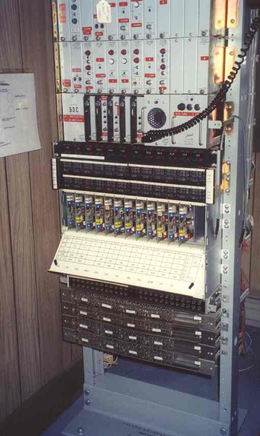 The little island of Frenchboro, Maine, had this central office switch for a number of years. It served about 37 subscribers. Jeff Webber (in the second image with the switch) was responsible for forming the Island Telephone Company and building this CO. It's only 8 feet wide so that it would fit on the ferry that links Frenchboro to the mainland. The third picture shows the battery bank on the left that provides the traditional 48 volt for the switch. The batteries just to the right of it provide 24 volts for the microwave link to the mainland. The microwave equipment is in the image at the far right.