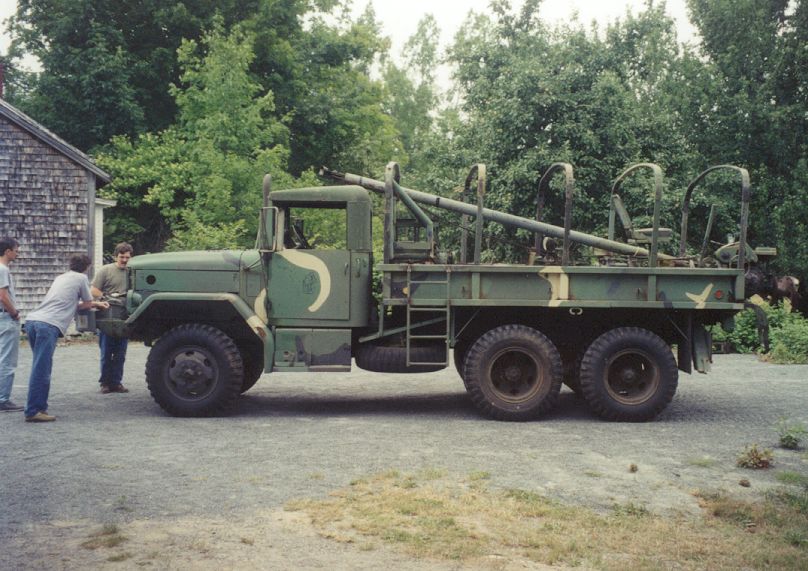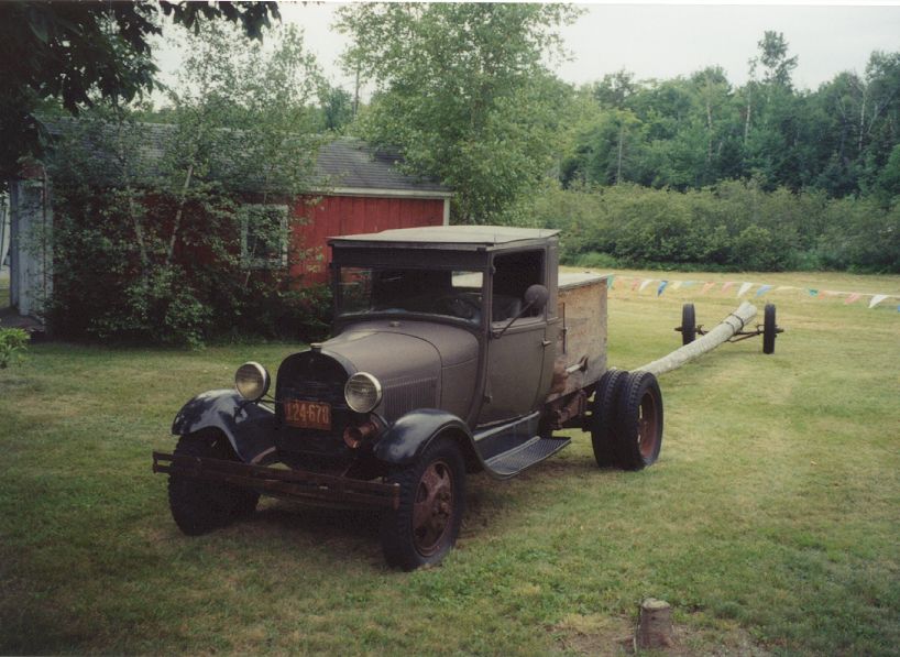 Finally, here are some examples of outside plant equipment. The first truck is a 1929 Ford equipped with a cedar pole and a "pole dinky", the little wheel carrier at the rear. The other truck is a military surplus pole hole digger.