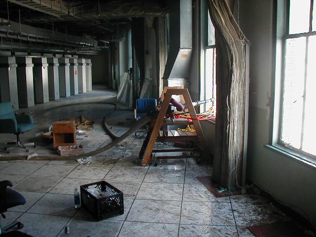 These are some photos gathered from various sources of the Verizon work at the World Trade Center site. These are all shots of the 140 West Street building. This particular building was home to the Verizon executive offices as well as a considerable amount of central office equipment. You'll see several shots of the 7th floor and the #5ESS located there. The Verizon staff worked around the clock to rebuild this facility and get it running again in spite of the damage. It's a wonderful testament to the hard work and dedication of the Verizon employees. It's certainly in the spirit of service of the old Bell System.