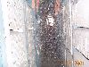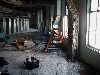 Note the fire hose spraying water on the wreckage outside, the water on the camera lens, and the equipment cabinets hanging out in space.