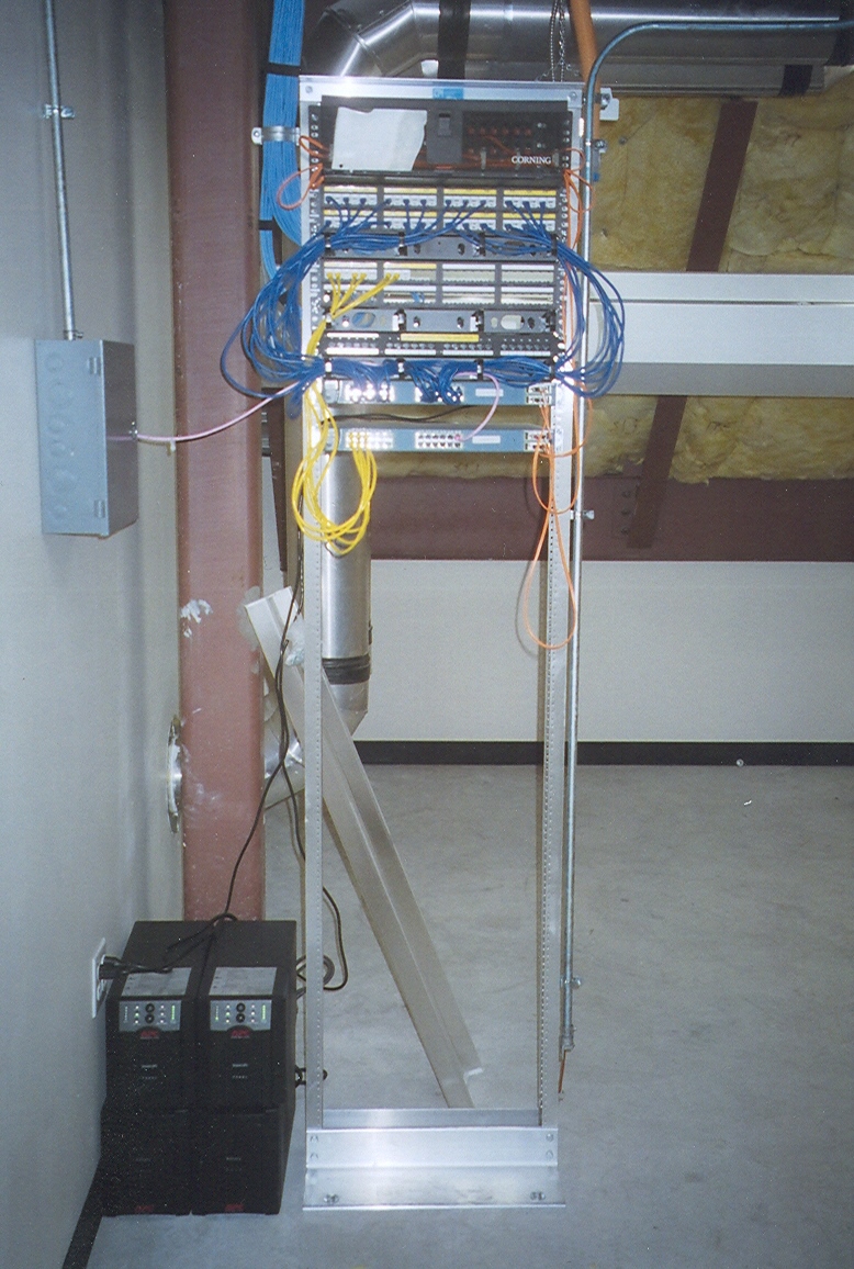 You'll note in this photo that there are uninterruptible power supplies that are powering the routers. These supplies are like the CO battery banks and they ensure that the routers will have power---and the phones will work---if there's a power outage. However, unlike a CO battery bank these supplies deliver standard 120 V AC power to the routers.