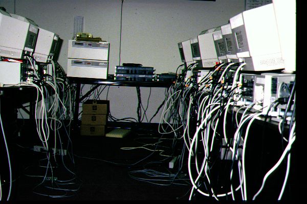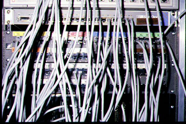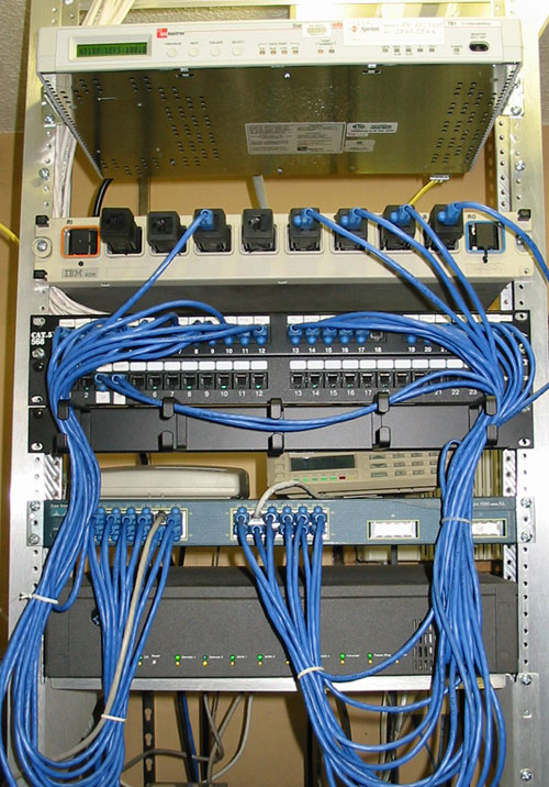 CAT-5 wiring Temporary lab: note the mess! CAT-5 wiringCAT-5 wiringCoaxial cable patch panel with BNC connectorsFur ball wiring example