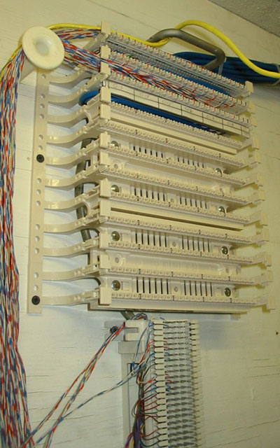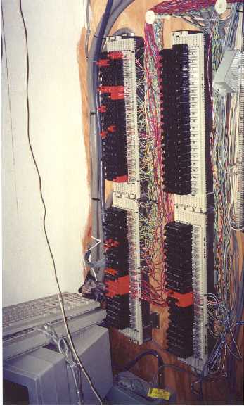 Now for a variety of private branch exchange (PBX) images. These are of a Rolm PBX. There's the PBX itself, the protection block for incoming lines, the patch area on the wall, and the voice mail system. Note that the wiring uses 66 or 110 blocks for the connections.