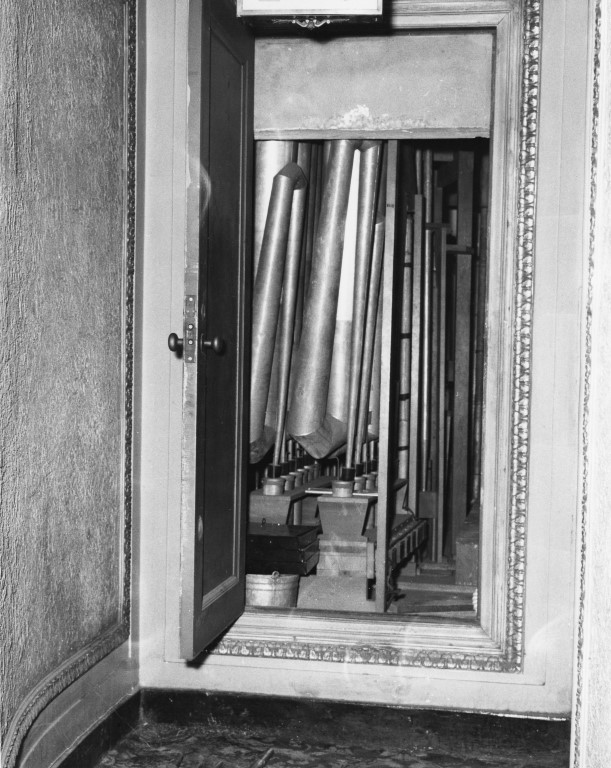 This image is of Wicks Op. 1652, 2/3 in my living room. Note the 8' Diapason mounted horizontally. The blower is in a crawl space under the living room. Click here for more photos and details of the instrument. Unfortunately this instrument was sold some years ago and is now in a church in South Carolina. I had mixed feelings when it left the house. Dick Kline Residence This next series of images is from Dick Kline's residence in Thurmont, MD. Dick had a 4/32 Wurlitzer, most of which was from the Fox/Capitol Theater in Washington, DC. He lovingly restored and expanded it over the years and it was one of the finest residential theater organs. Dick died in February 2023 and his organ was moved west to Utah where it is being restored. . On the left is the facade of the Fox Theater on F Street in Washington. It's now the National Press Club building. Here are some views of the theater interior before the organ was removed. I think these were taken in 1963