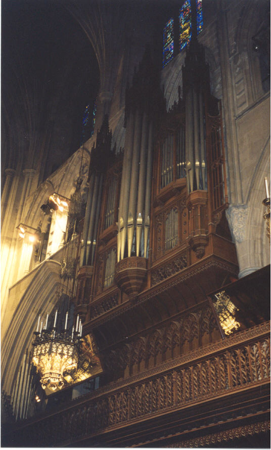 National Cathedral, Washington DC Here are a couple of views of organs in the National Cathedral in Washington, DC. The first image is a small-ish Aeolian Skinner in the Bethlehem Chapel in the crypt and a portable Reuter that usually lives in the nave. Next are two views of the big 4/185 mostly Skinner and me at the console.