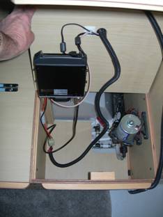 Going Mobile in a Roadtrek Dave Whitmore, N1CPP There were a couple of design criteria for the installation of a dual-band mobile rig in our 2006 Roadtrek 210 Popular. First, the radio should be as unobtrusive as possible. It should be tucked away to avoid the possibility of theft and to make the best use of the available space. Second, it should minimize the impact on the Roadtrek. This means a minimum of holes and permanent changes. Let’s start with the radio. It’s a Kenwood TM-G707A dual band (2 meter, 70 cm) rig. It has a detachable faceplate so the control head can be mounted remotely from the radio. The radio itself was mounted in the same compartment as the water pump. The standard Kenwood mounting bracket was attached to the top of the pump compartment and the cables routed through the top finger hole. This location provided easy access to the antenna cable and a 12 volt DC source. These two views show the compartment open and closed. Note the cables coming out of the top of the box. One set of cables is for the 12 volt DC power which was borrowed from the A/V cabinet above the pump compartment. The other set of cables is for the remote control head, speaker and microphone. Note that all of the wiring is encased in “loom tubing”, available from Amazon or your local auto parts store. The tubing keeps the wiring protected from normal wear and tear. The antenna cable goes aft from the radio. This routing was relatively easy to do since there were lots of openings and spaces to thread the cable. More protective tubing was used where the antenna cable left the pump area and entered the basement. We keep a lot of things in the Roadtrek "basement" and again the idea behind the loom tubing was to keep the wear and tear on the antenna cable to a minimum. The mount comes with a 6’ cable and I added a 10’ extension to reach the pump compartment. This is a Diamond C110 cable. There are other excellent antenna manufacturers besides Diamond so just shop around or visit a hamfest. The last part of the project was routing the cable from the radio to the control head, speaker and microphone up front. Here’s the final result.