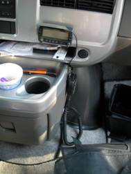 The cables for the control head, speaker and microphone were put into tubing and the tubing was attached with adhesive mounts and cable ties just off the floor under the kitchen cabinets.. It’s out of the way, accessible, and you can't trip over it. The rug between the driver and passenger seats covers the last few feet of the cable run. This should give you some ideas about how you can install a mobile rig. Use the ideas above and experiment a bit! 73, Dave |