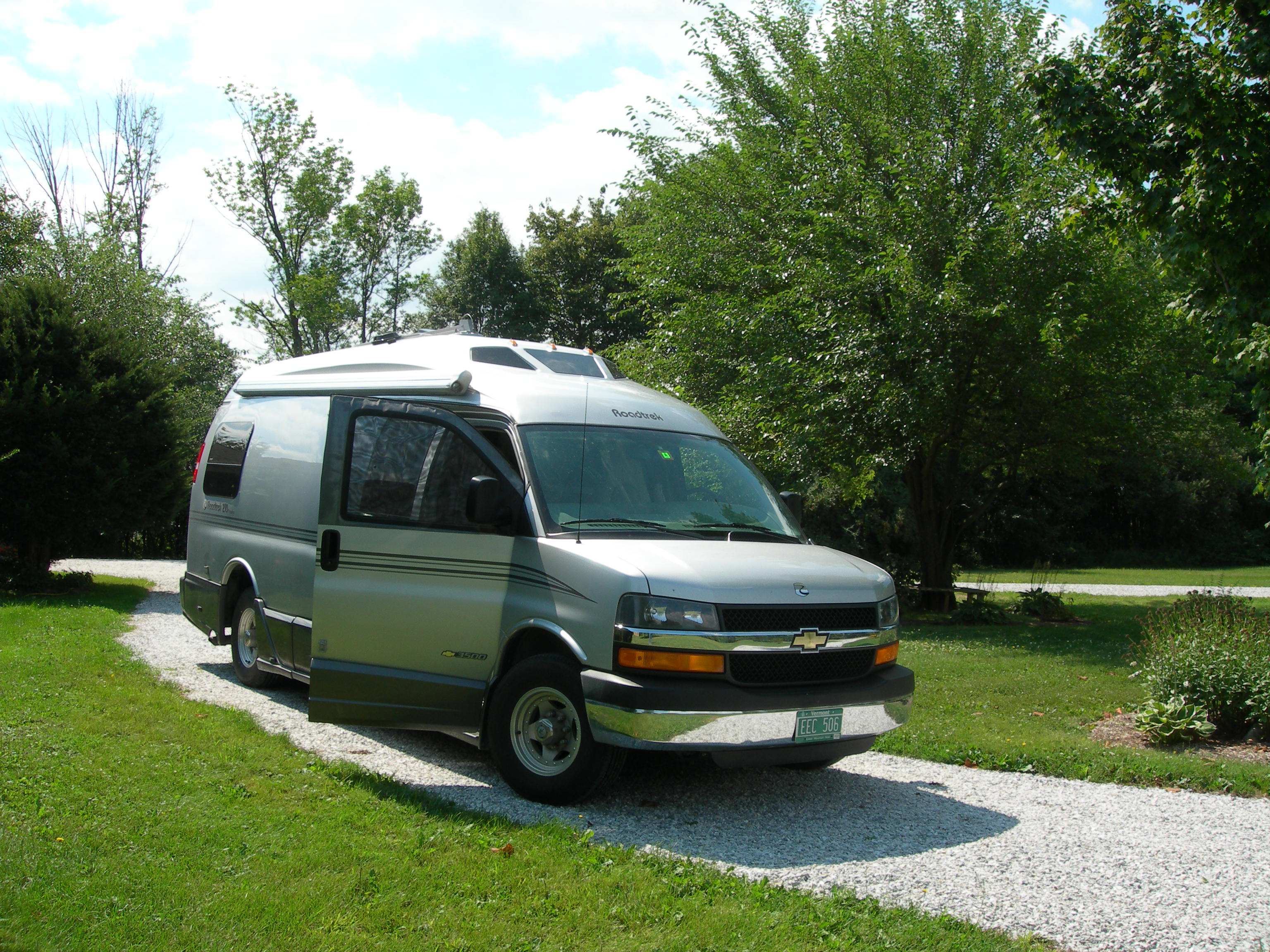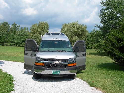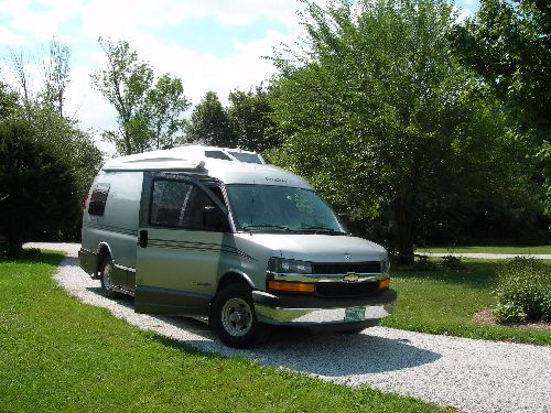 It's tough and remains flexible in cold temperatures. It also fits into the hose box on the 210 much easier than the original hose. Just tell them what kind of Roadtrek you have and they'll send you the right thing. Ten feet should be adequate. Expect to pay about $50 plus shipping. We had ours installed by our local RV dealer. We've tried several different kinds of camp chairs and have ended up with the Pico arm chair from CGI Industries. These are fairly expensive chairs but they're comfortable, they're sturdy, and they collapse to a very small package that fits into the Roadtrek basement. You can find them on Amazon.com or else a booth at a big rally. We got ours from the FMCA booth and they gave us free coffee mugs too! Price was about $100 each but they're worth it.